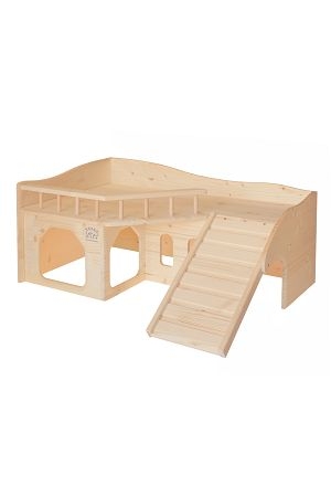 Die Kaninchenschloss ohne Turm ist bereits fertig zusammengebaut, mit Ausnahme der Treppe, diese kann mit den beigelegten Schrauben einfach montiert werden. Es ist aus massivem Fichtenholz gefertigt, da dieses Material keine schädlichen Stoffe enthält und zu 100% biologisch abbaubar ist. Sie kann auch unbedenklich von Ihrem Heimtier angeknabbert werden! „Handgefertigt“und Sorgfältigst verarbeitet. Ein Naturprodukt aus garantiert unbehandeltem Fichtenholz. Bei Verwendung im Freien, empfiehlt es sich das Holz zu behandeln um es vor Feuchtigkeit zu schützen (z.b. mit Bienenwachslasur oder Spielzeuglack)