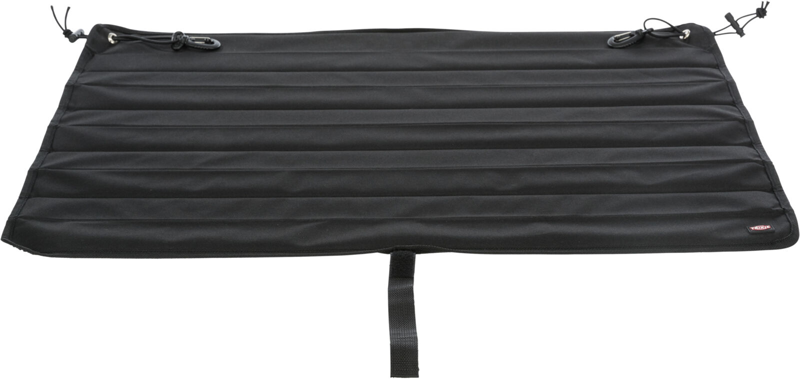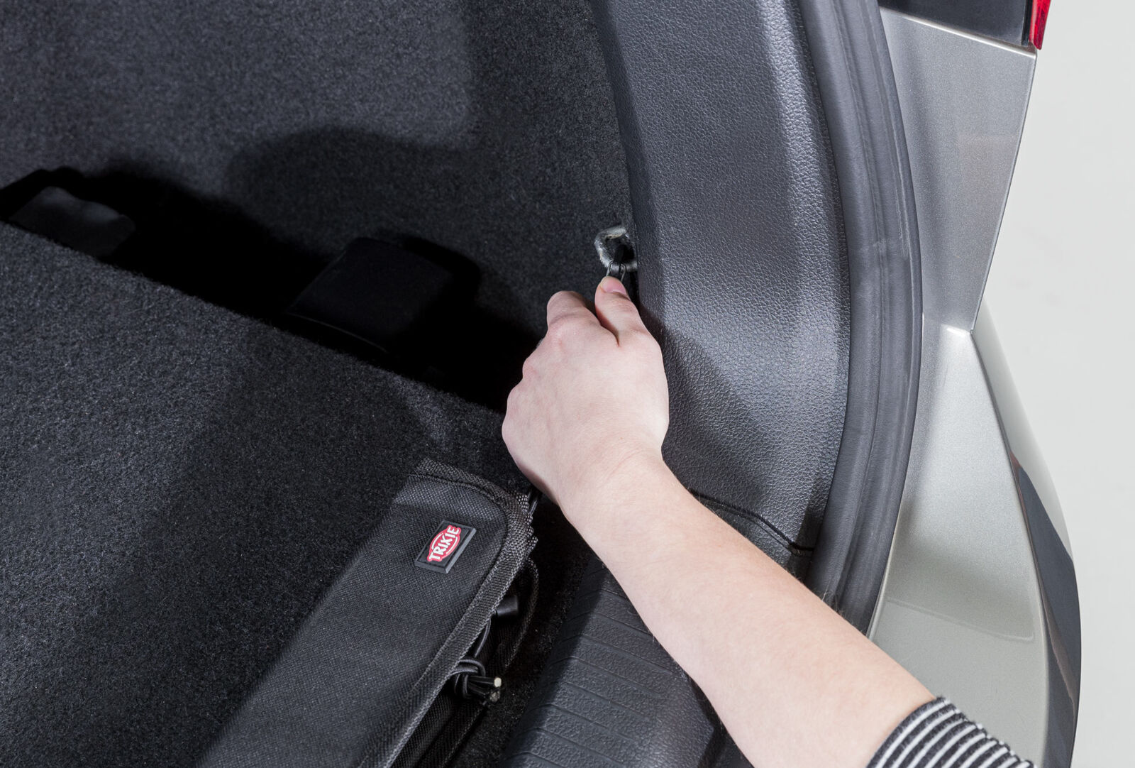 - avec bandes élastiques et mousquetons pour fixer facilement aux crochets au sol du coffre de voiture